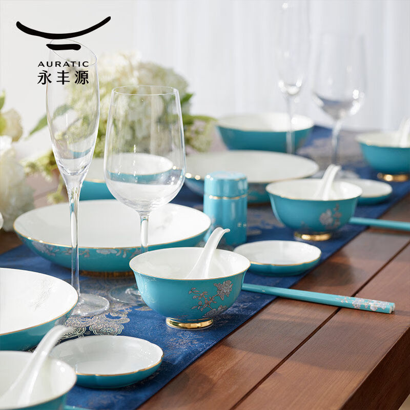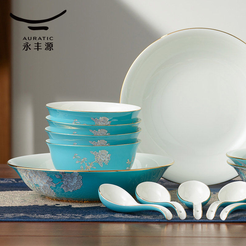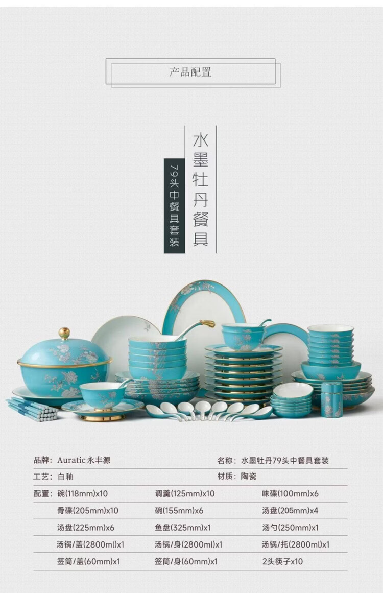 永丰源盛宴瓷·水墨牡丹-79头中餐具(10人位)