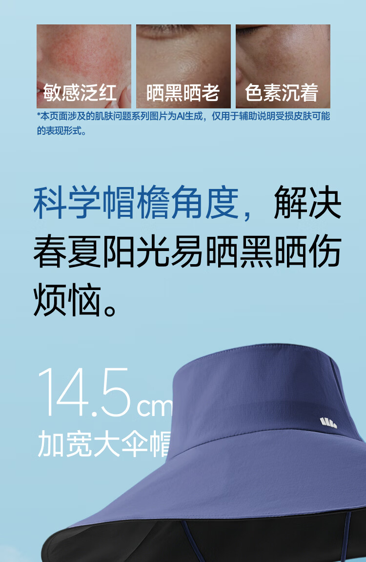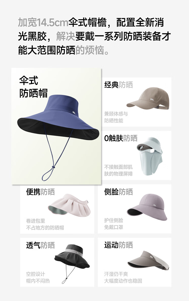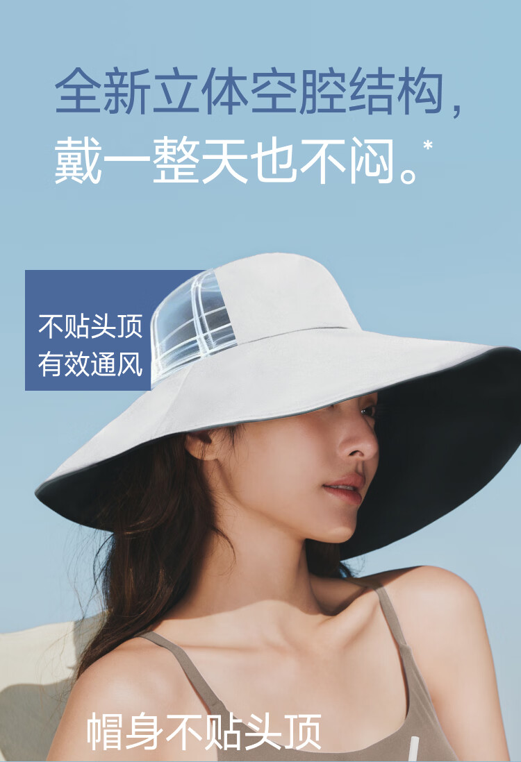 全新立体空腔结构戴一整天都不闷、整帽轻至99g 柔软无发箍设计贴合头型、稳固不易掉 14.5cm超长大帽檐、如伞般防护至肩膀