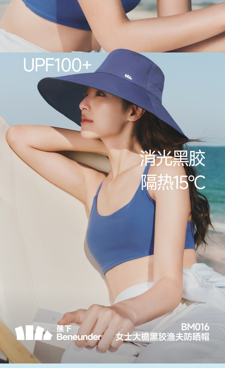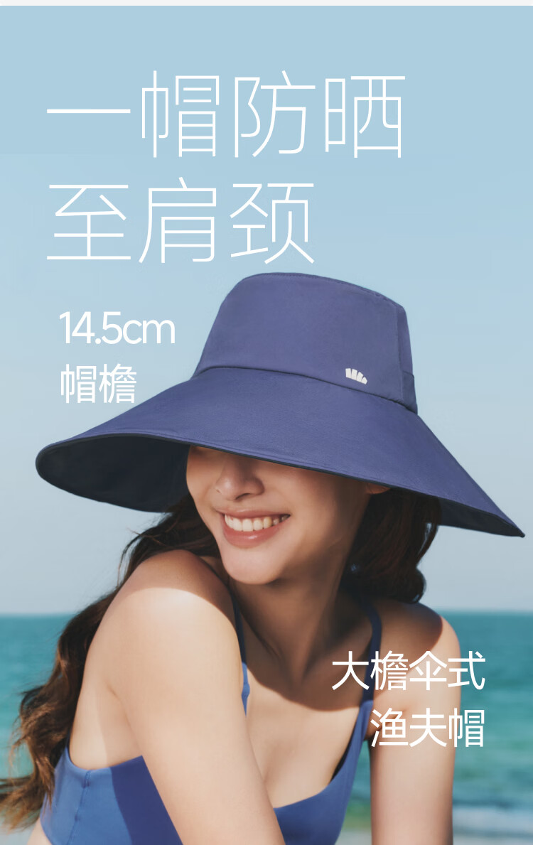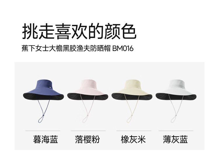 蕉下女士大檐黑胶渔夫防晒帽BM016