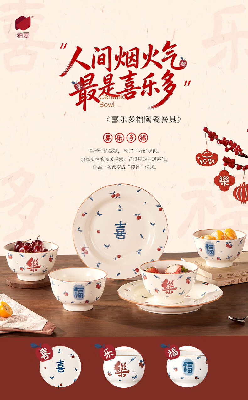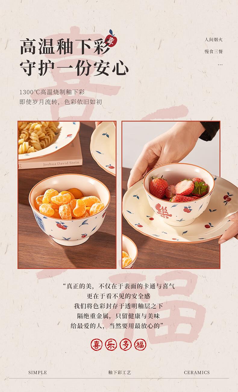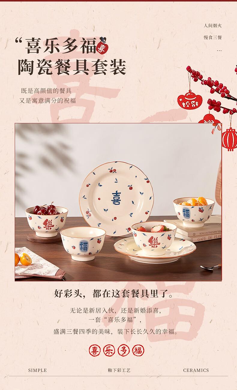 釉夏喜乐多福陶瓷餐具六件套Y-XLDF/L6